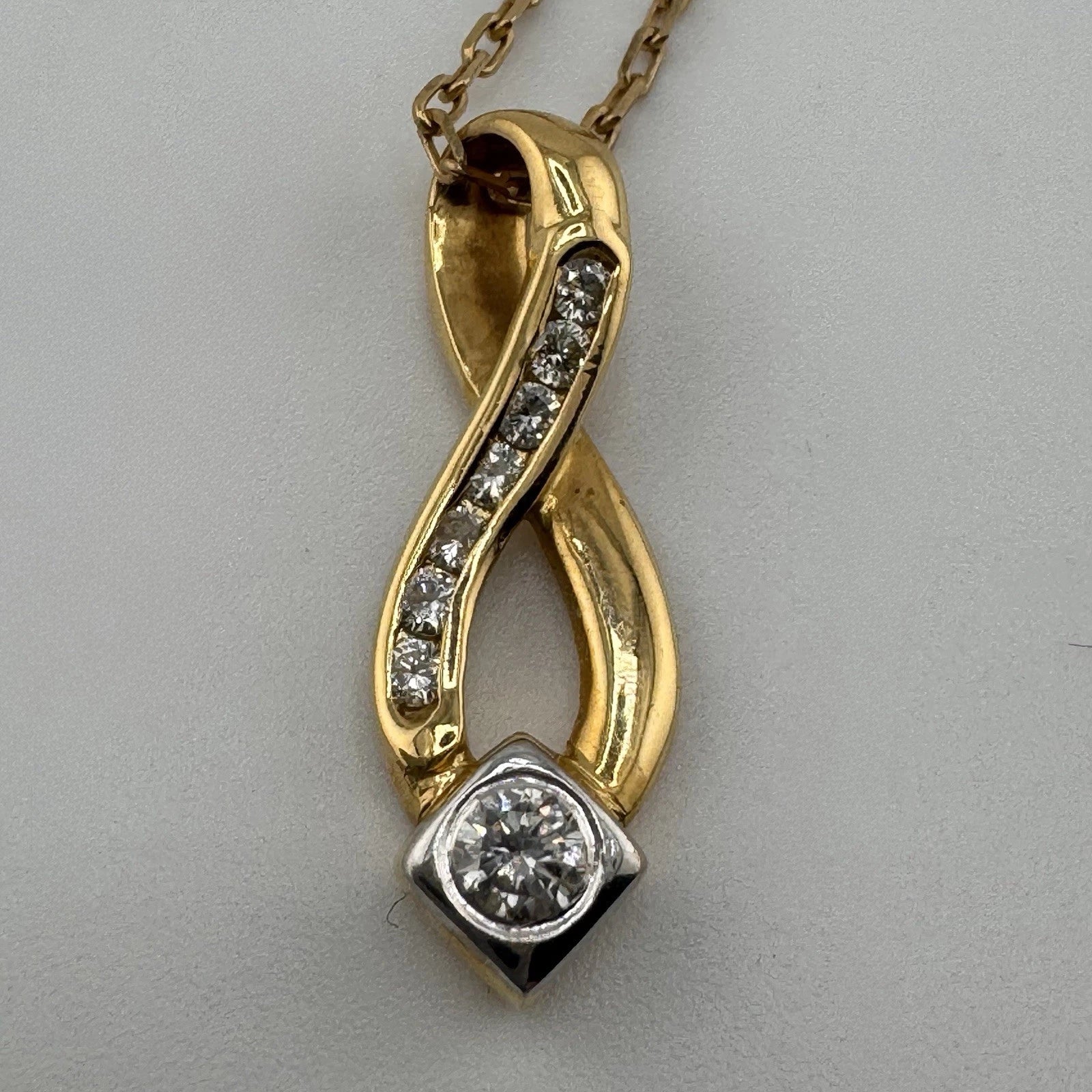 18ct Gold 0.4ct Diamond Pendant on 18in 9ct Box Chain, Hallmarked 5g