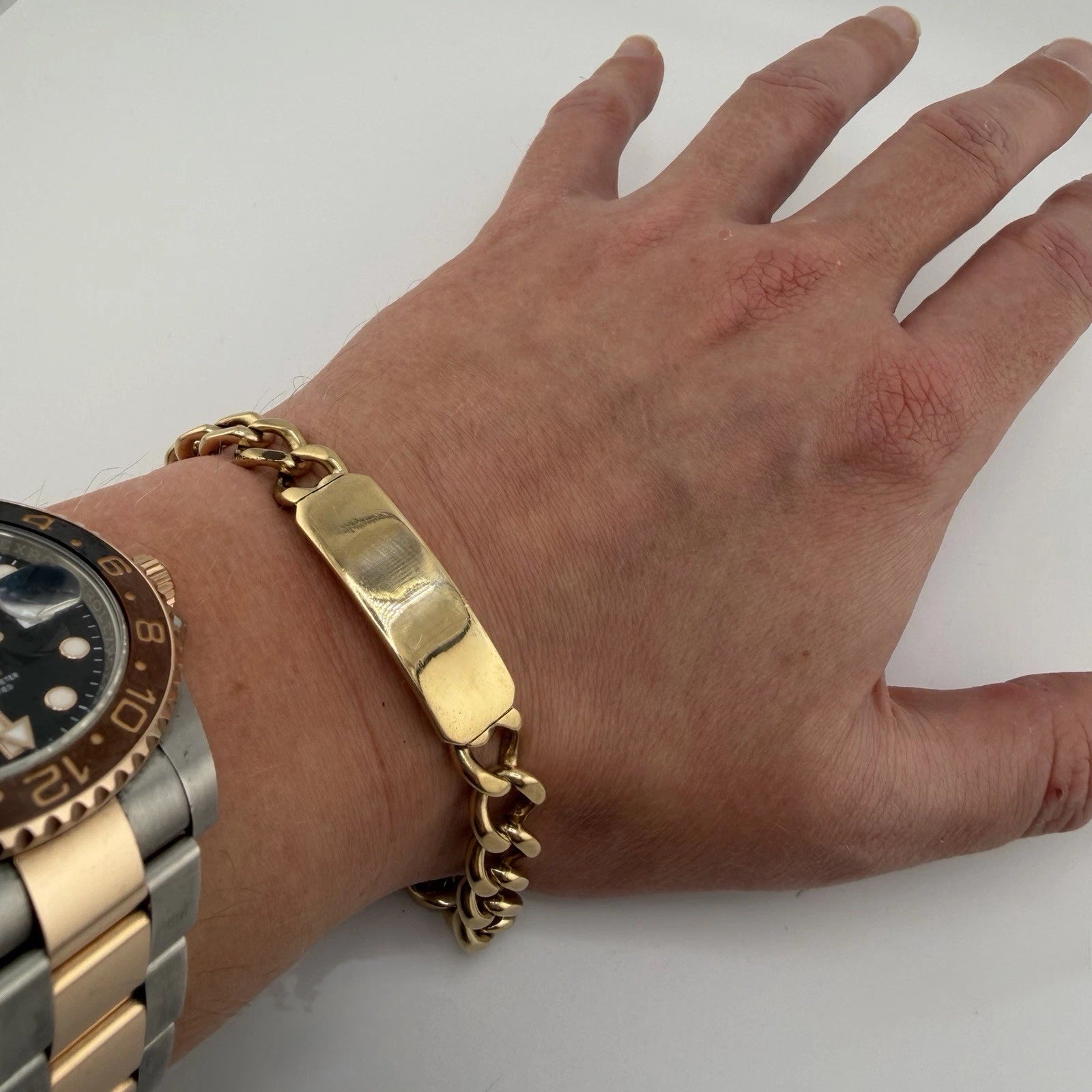 A 9ct gold men’s curb ID bracelet. In excellent used condition hallmarked.