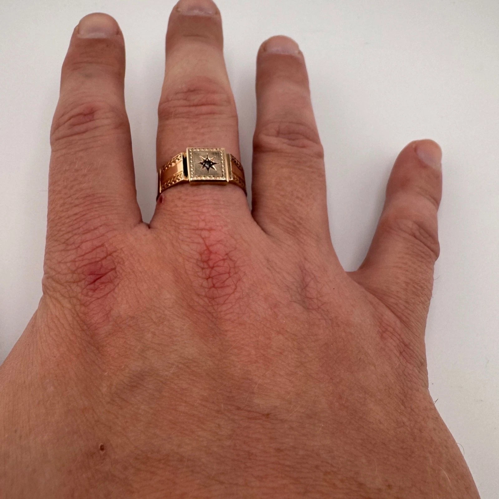 9ct Gold Diamond Set Signet Ring, Size Y1/2 Full UK Hallmarks 4.65g
