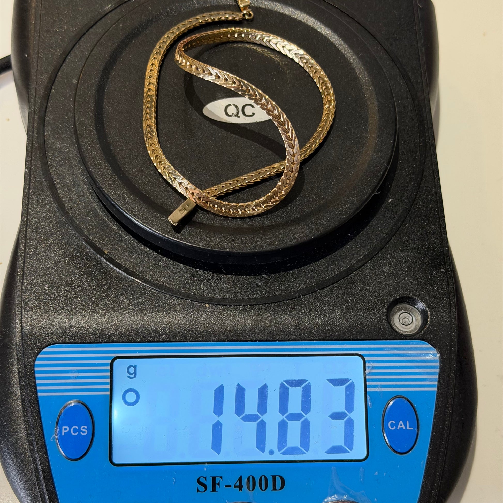 9ct Yellow Gold Ladies/Girl Herringbone Link Choker Necklace, 4mm W, 14.5in L, 14.8g Stamped 9ct