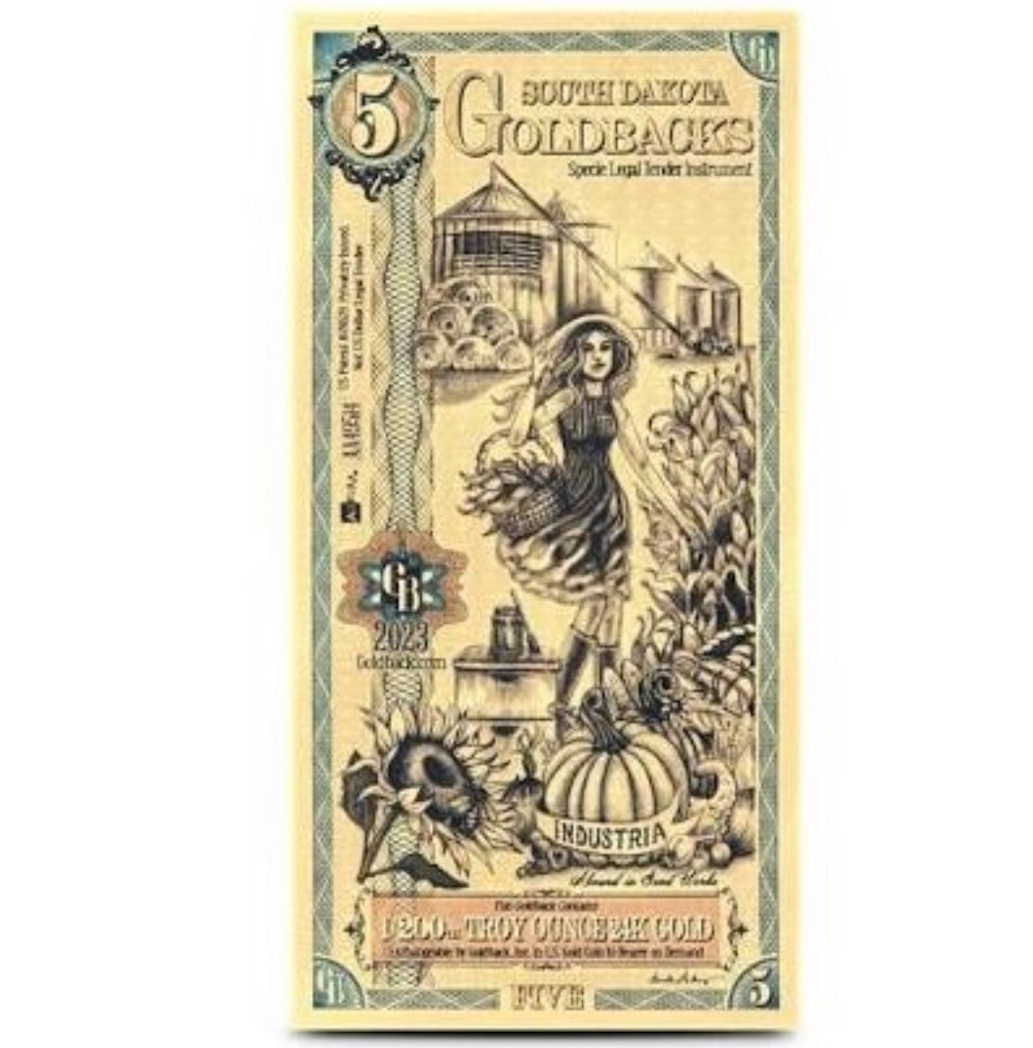 South Dakota 5 Goldback Note 1/200ozt (0.156g) of 24k 9999 Fine Gold